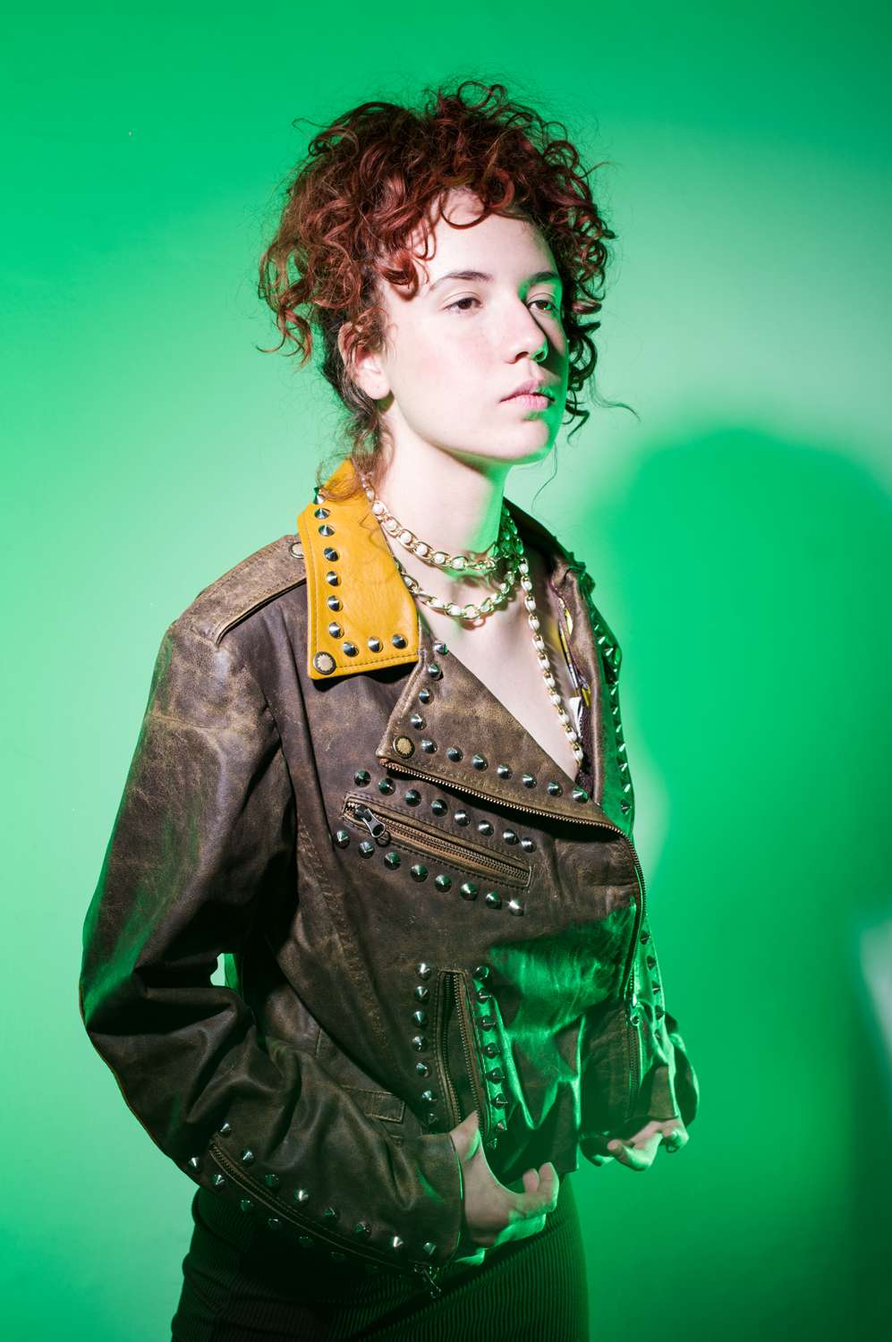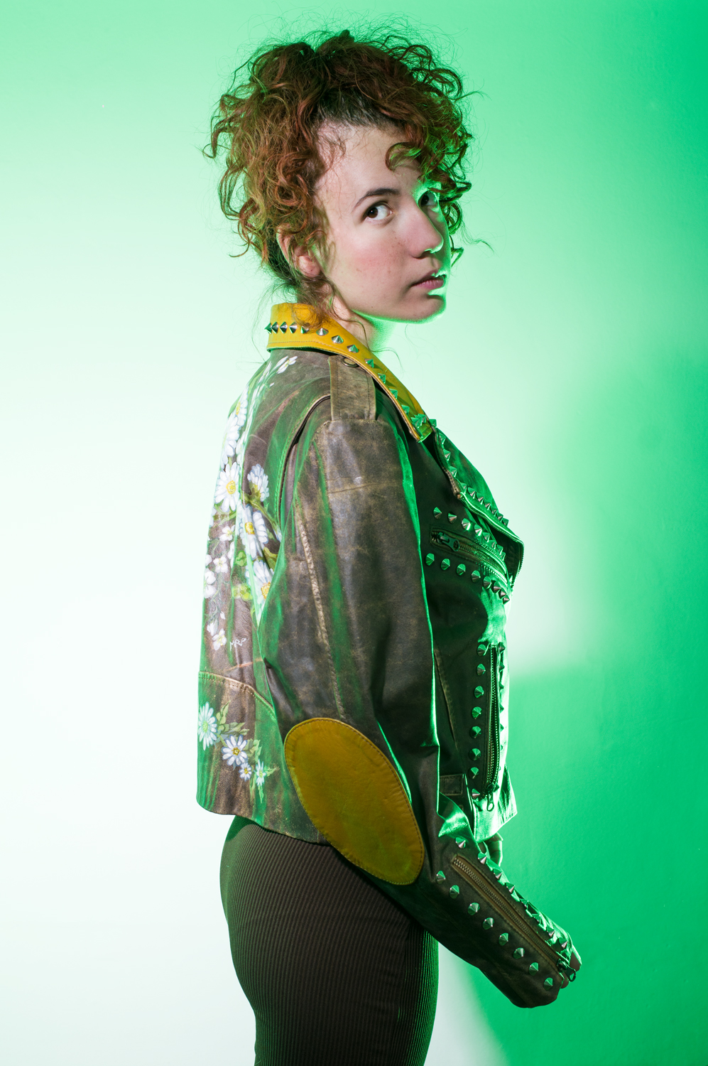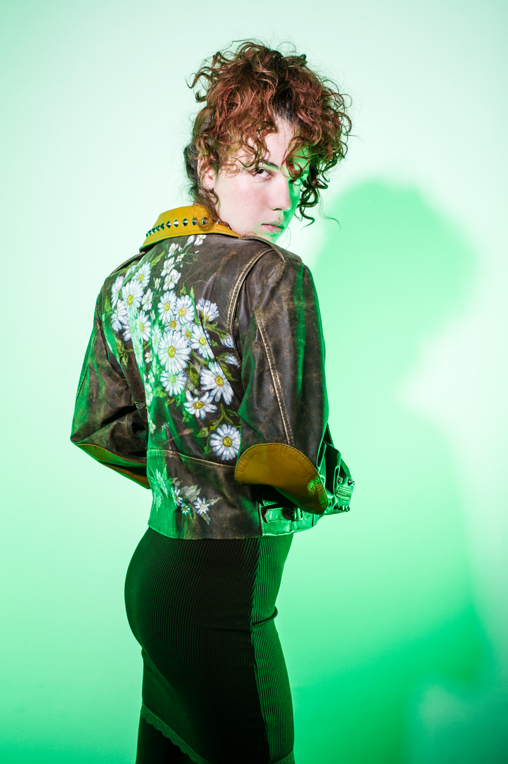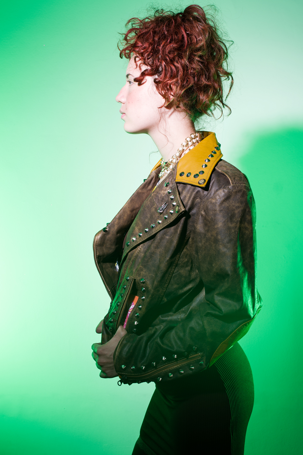 • Chamarra en piel natural, suave al tacto, Arte pintado a mano en la espalda por Manuela Restrepo, cremalleras, herrajes y remaches en acero inoxidable importados. Joyería en plata ley 950, por la marca 40 Onzas.