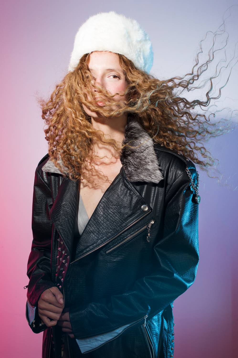 Abrigo en piel natural, suave al tacto, cuello de ovejo natural. Con cremalleras, herrajes y remaches de acero inoxidable importados,