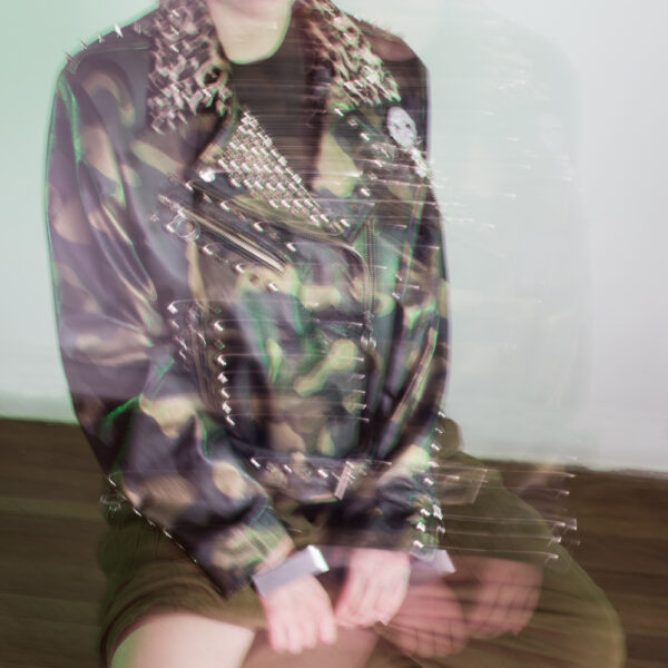 Chamarra en piel natural, suave al tacto, Arte pintado a mano en la espalda por Manuela Restrepo, cremalleras, herrajes y remaches en acero inoxidable importados. Joyería en plata ley 950, por la marca 40 Onzas.